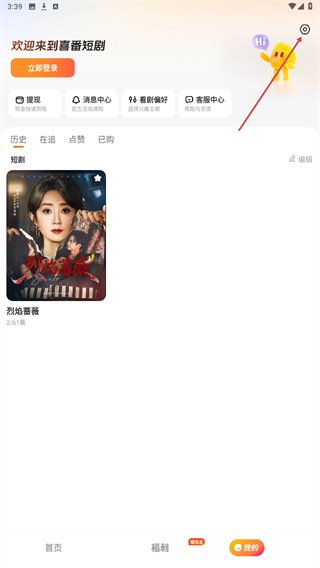 1、打开喜番短剧app,点击底部导航栏的我的选项,进入个人中心页面。