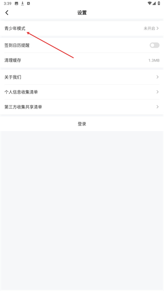 3、在设置页面中,找到并点击青少年模式选项,进入青少年模式的介绍页面。