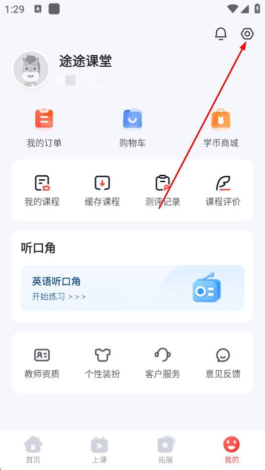 1、打开途途课堂App,点击底部导航栏中的我的选项。