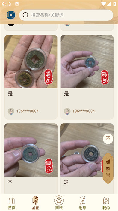 4、在鉴宝里面可以看到其他用户们鉴宝的结果,也能自己发布想要鉴宝的商品;