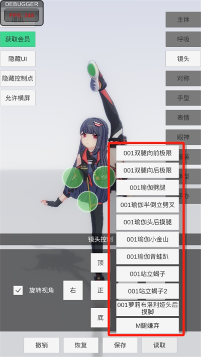 3、在这里还可以看到一些控制点的移动,这里可以控制角色的头发方向和位置变化;