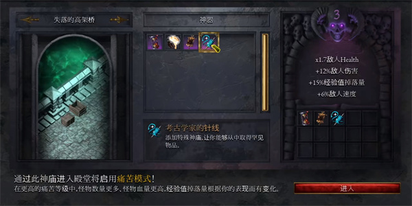 3、然后可以选择常规模式与痛苦模式,在痛苦模式中击败怪物越多奖励就越多,点击右下角的【进入】前往自己选择的战斗模式中;