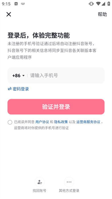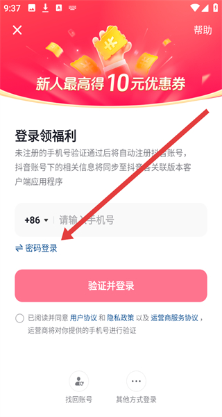 2、在进入到验证码登录界面中时,可以点击密码登录按钮,切换为密码登录。