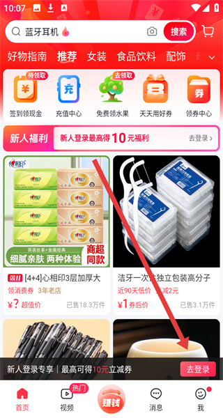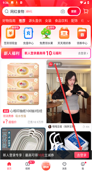 1、在进入到抖音商城首页中,可以点击下方去登录按钮,进行登录操作。