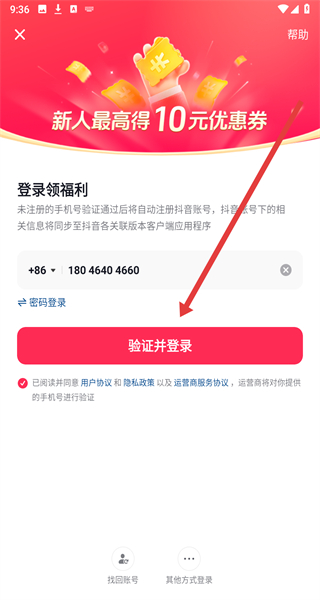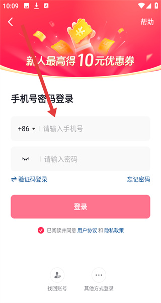 4、在切换到手机号密码登录界面中,点击输入框依次填写手机号和密码信息,即可点击登录按钮完成登录。