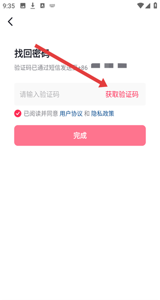 4、在进入到账号密码页面中,点击获取验证码并输入后,即可开始重置密码。
