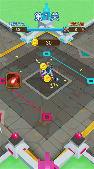 英雄在战斗中获取更多的金币,随着等级的提升和金币的积累,他们可以解锁更多独特的英雄和土地,增加兵力。