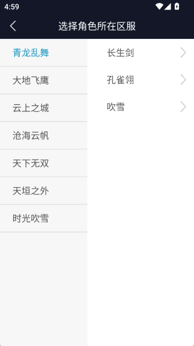 4、然后进入角色区服选择界面,在这里选择自己的角色区服以及角色即可。