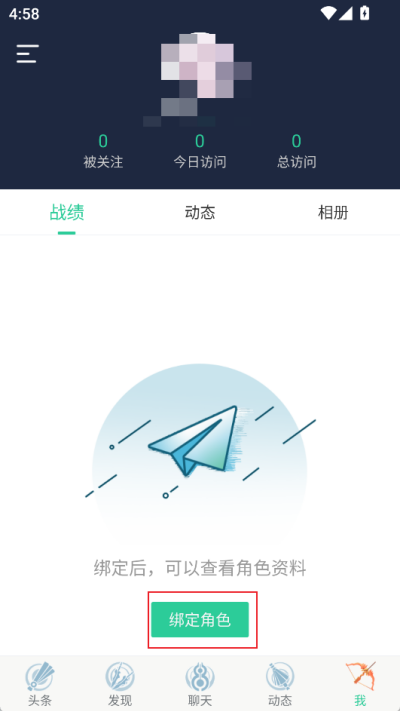2、进入个人信息界面后,点击界面最下方的【绑定角色】选项;
