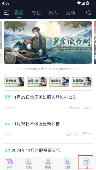 1、首先打开下载好的天刀助手APP,进入软件后点击界面右下角【我】选项;