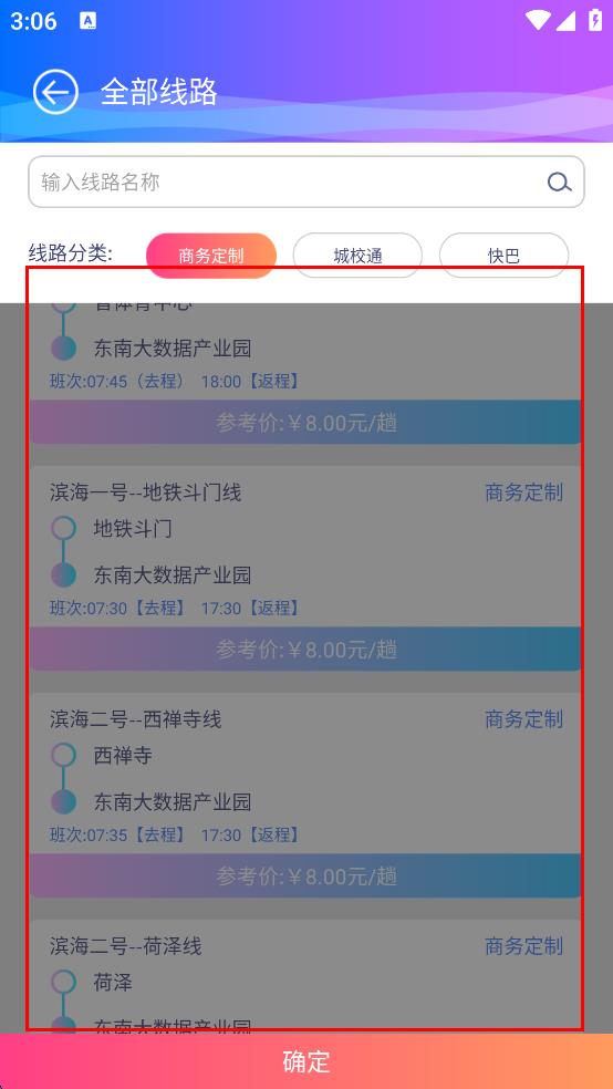 3、在全部线路页面,可根据线路分类或在搜索框输入线路名称,查找所需线路,找到后点击对应线路,即可查看该线路的班次、参考价等详细信息。