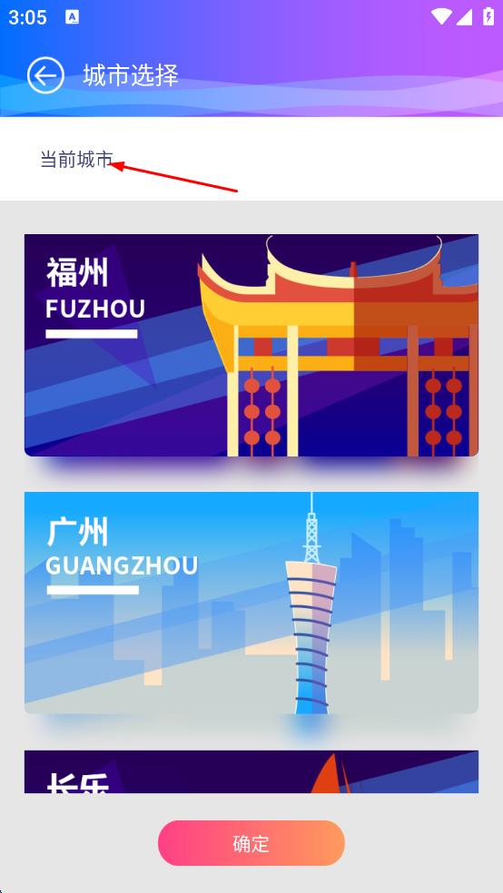 1、打开交通出行软件,进入城市选择页面,选择好当前城市后,点击“确定”按钮,进入主界面。