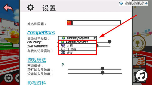 2、在设置页面中,找到竞争对手类型对应的下拉选项,点击该选项可展开对手类型列表。