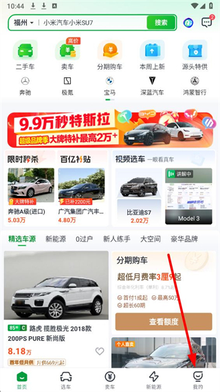 2、在买车页面,根据自己选择感兴趣的车辆。