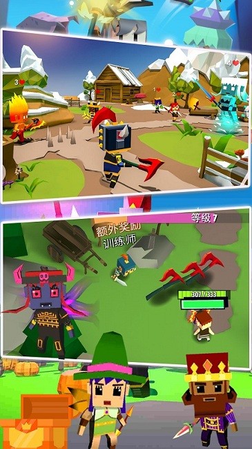 3、角色组队竞技:游戏中有很多造型不一样的角色,玩家创建角色后可以与他们组队竞技,共同迎接挑战。