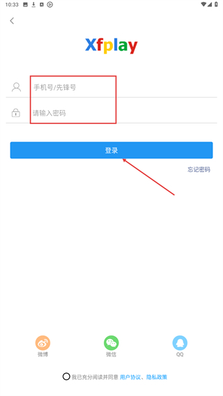 3、在弹出的登录界面里,输入手机号、密码后,点击登录的按钮即可完成登录。