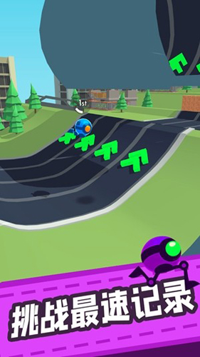 1、操控机器人闯关:玩家通过控制机器人的动作,如滚动、行走、攀爬等,让其在赛道上前进,要根据赛道的特点和障碍物的分布,灵活运用各种动作。