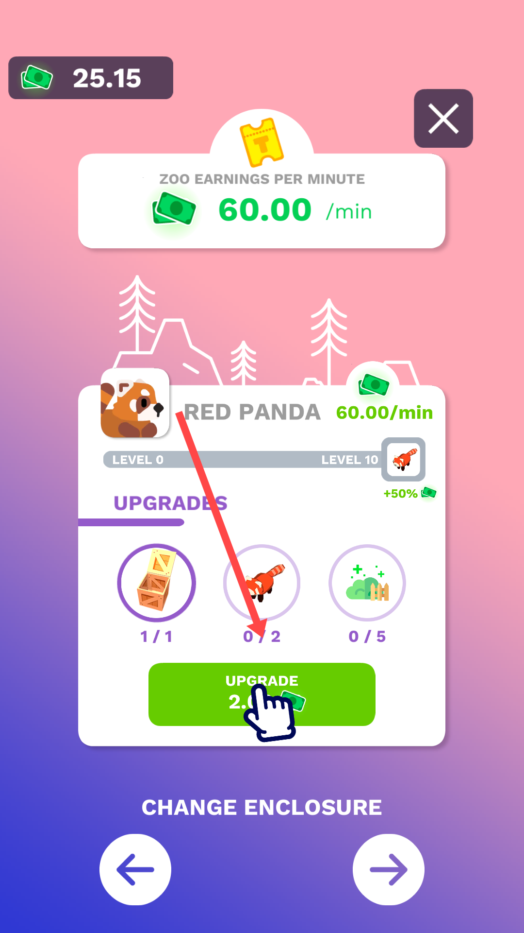 2、连续点击这里根据提示的要求就能升级从而建成动物园。