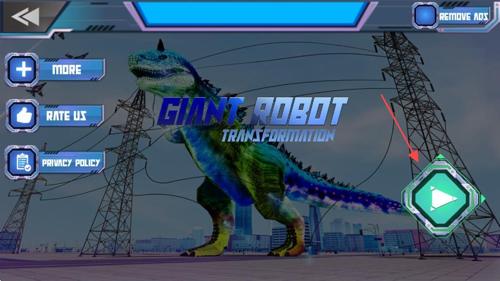1、基础操作与切换:通过虚拟摇杆控制恐龙移动,点击按钮切换形态,长按屏幕释放强力技能;机器人形态下可瞄准锁定目标。