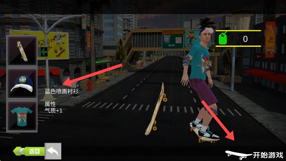 3、滑板养成外观自定义:使用收集的金币升级滑板属性(速度、跳跃高度、特技稳定性),解锁碳纤维滑板、悬浮滑板等高科技装备;在衣柜系统中搭配帽子、T恤、运动鞋。