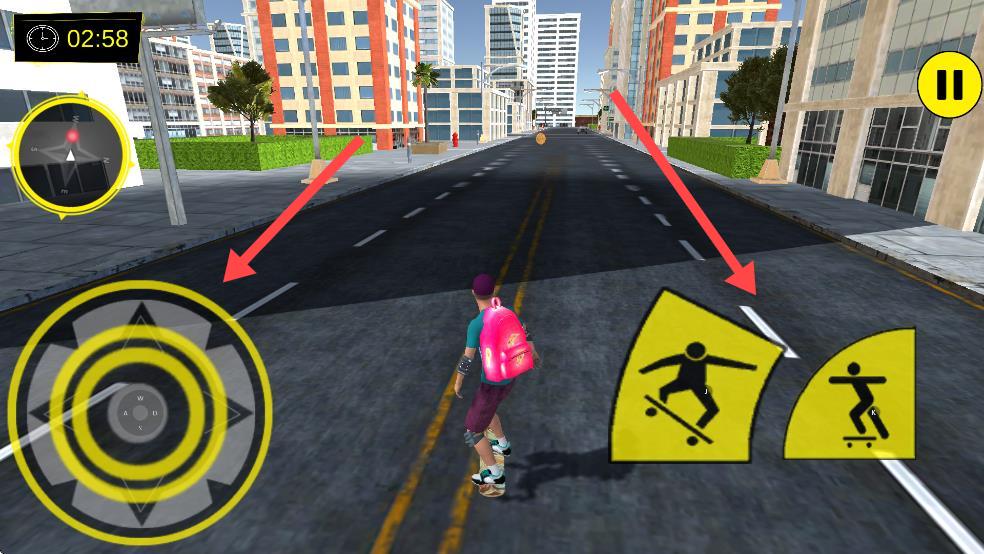 1、真实的滑板特技系统:支持豚跳、尖翻、大乱等20+种经典滑板动作,空中可组合按键触发连招(如540度旋转接滑板抓板),落地精准度影响速度保持。