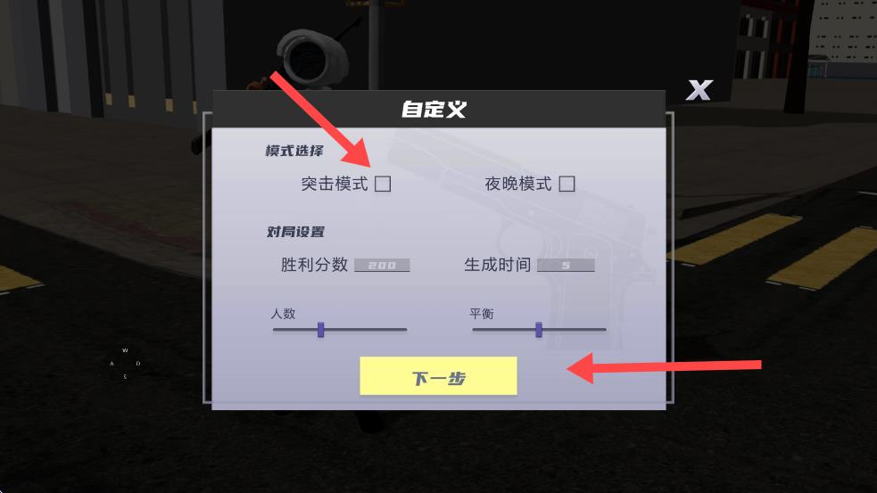 2、例如选择自定义战役就可以选择自己想要的模式还有分数等,最后点击下一步就可以进入游戏。