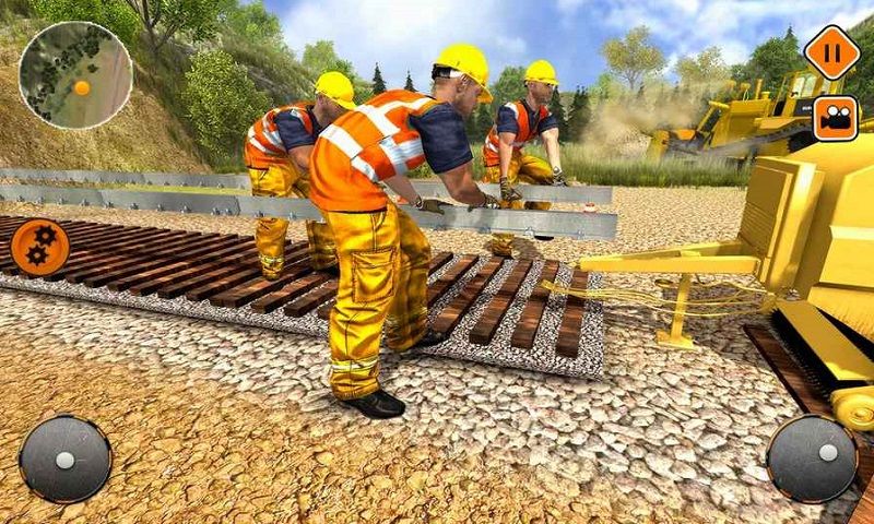 2、施工任务完成:完成如驱动推土机清除石块、运送梯子和火车轨道等分配的建筑游戏任务。