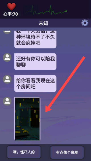 1、互动对话解谜:以手机聊天界面为载体,玩家通过回复信息与NPC深度互动,从对话内容中提取线索破解房间机关,如解读图片细节破译密码,每个选择直接影响解谜进度。