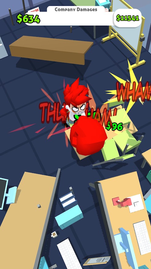 1、尽情破坏办公:能够尽情地在办公室中进行破坏,将所有的一切全部摧毁掉。无论是桌椅、电脑,还是其他办公用品,都可以成为玩家破坏的对象。