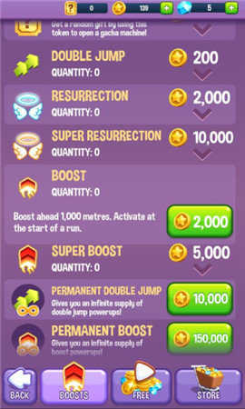 4、道具购买升级:可以购买和升级各种不同的道具,像子弹时间和无敌盾牌等,助力玩家在跑酷中取得更好成绩。