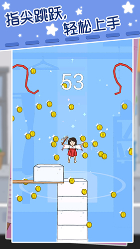 1、操控角色跳跃:操控游戏角色进行跳跃,在跳跃过程中要努力让女孩稳稳地落在豆腐正中央,考验玩家的手速和反应能力,通过不断练习提升操作技巧。