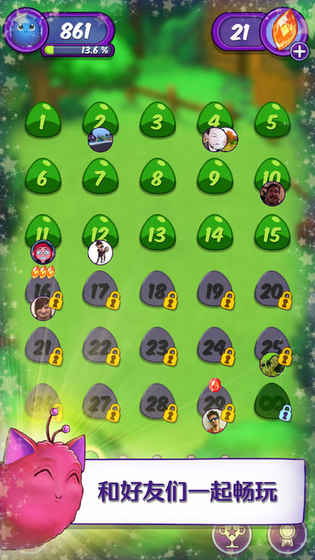 1、丰富关卡世界:设有5个美丽且充满挑战的世界,涵盖超过150个精心设计的关卡。每个世界都有独特场景与关卡难度设置,从神秘森林到奇幻城堡,在不同世界穿梭。