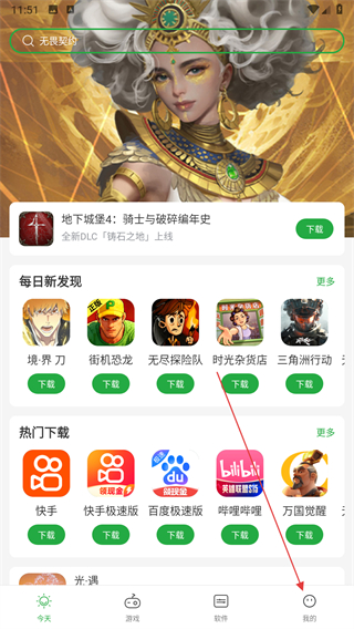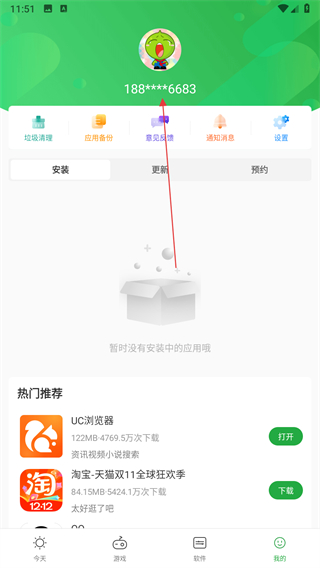1、打开豌豆荚主界面,点击底部导航栏中的我的选项,进入个人中心页面。