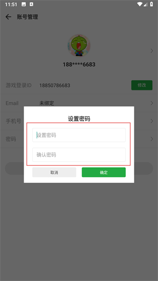 4、在设置密码窗口依次输入要设置的密码及确认密码,完成后点击确定按钮。