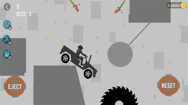 1、特技面对障碍:执行特技以面对致命的陷阱和障碍,按住可增加力量,将火柴人推下悬崖,增加游戏刺激感。