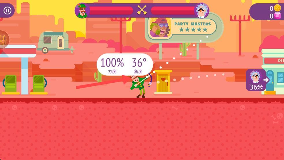 1、趣味射击机制:创新滑动瞄准操作,长按屏幕蓄力提升箭矢威力与射程,不同角度射击可触发抛物线弹道或反弹效果,面对盾牌敌人需瞄准弱点部位。