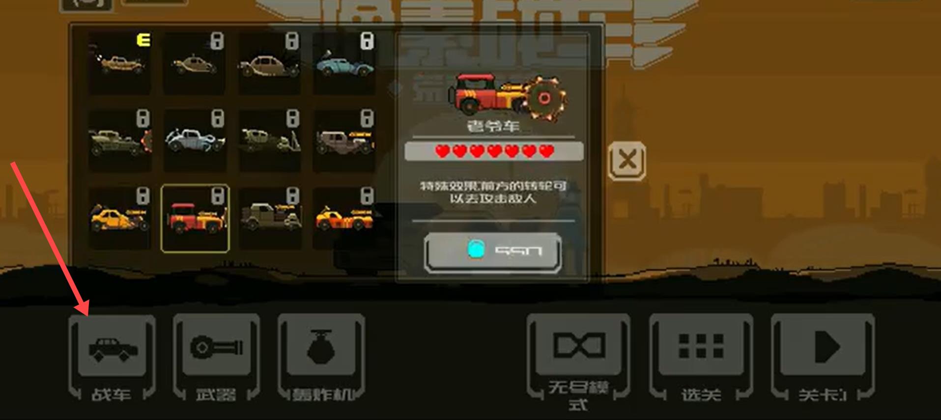2、战车改装体系:解锁轻型越野车、重装坦克、悬浮战车等5种基础车型,每种车辆可升级引擎、装甲、炮塔,搭配“反甲涂层”“燃油加速”等被动技能应对不同战况。