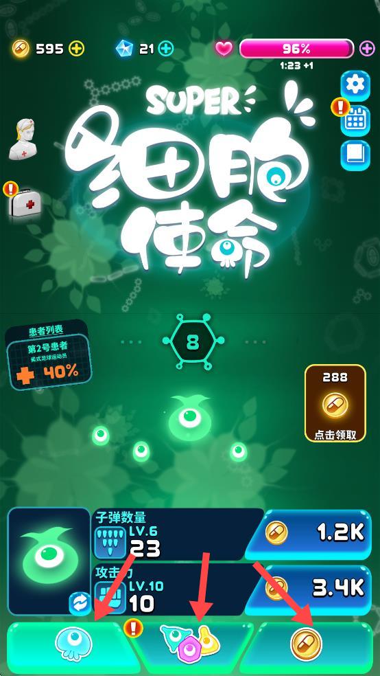 3、皮肤收集与成就解锁:完成“无伤通关”“连续击败100个敌人”等成就获取稀有皮肤,提升细胞攻击力、移速等属性,助力攻克高难度关卡。