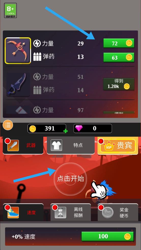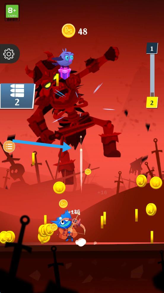 1、瞄准射击与环境利用:滑动屏幕拉动弓弦,力度条显示射击威力,角度标尺辅助预判轨迹,长按可开启“鹰眼模式”放大目标区域,针对不同敌人弱点。