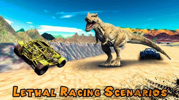 3、趣味互动探秘境:在驾驶赛车穿梭于恐龙世界的过程中玩家有机会与各种各样形态各异的恐龙进行互动交流触发一系列有趣的特殊事件。