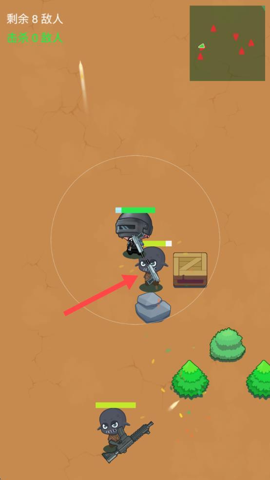 3、轻量化操作与策略深度:左手滑动控制移动、右手点击自动射击,支持“滑动瞄准”切换攻击目标,长按触发“子弹时间”精准爆头,新手可开启“辅助瞄准”。