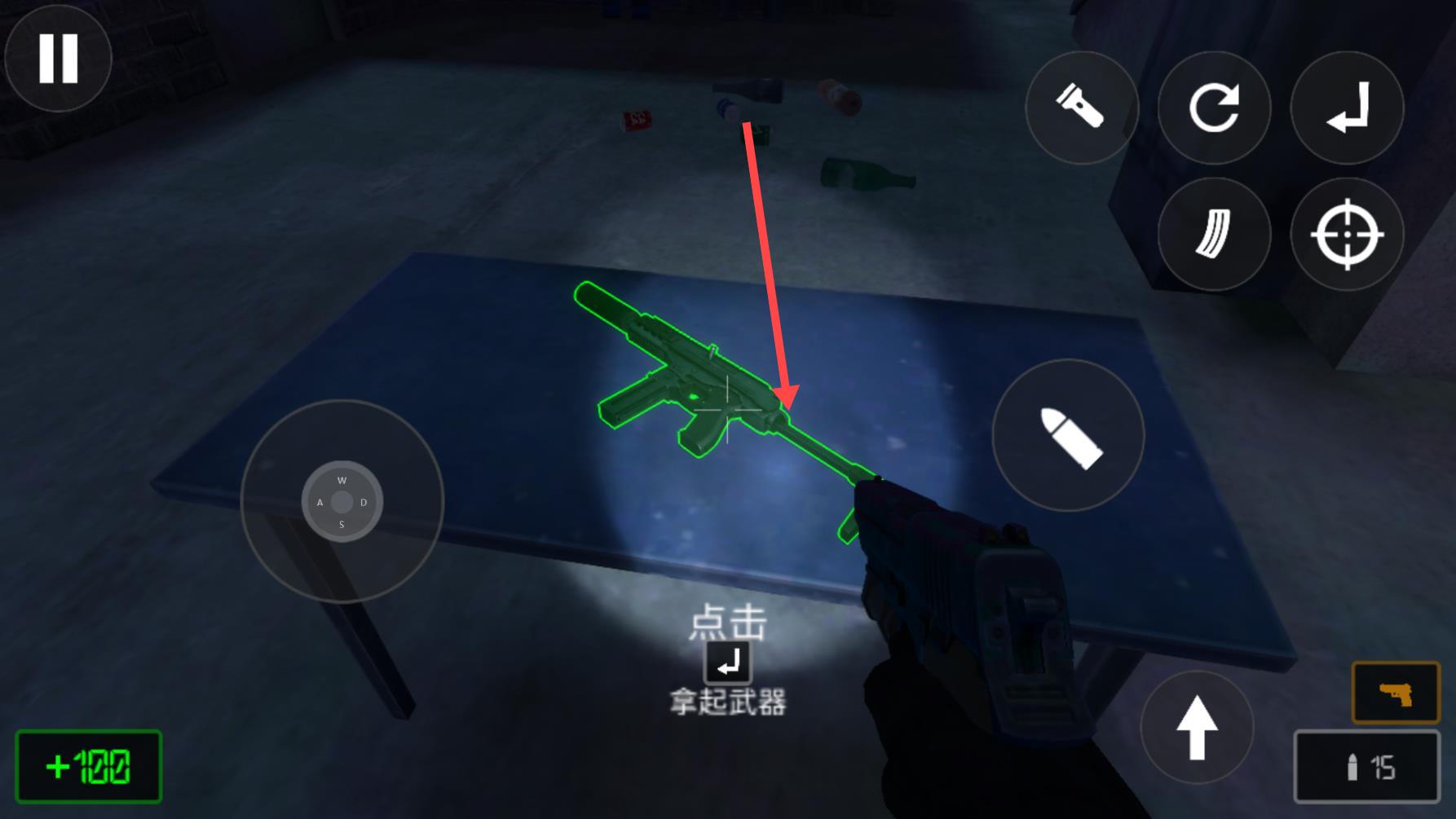 2、探索搜寻生存资源:在安全区域外的废墟建筑中探索,点击可疑物品收集生存必需的资源,如弹药可补充枪械子弹医疗包能恢复生命值。