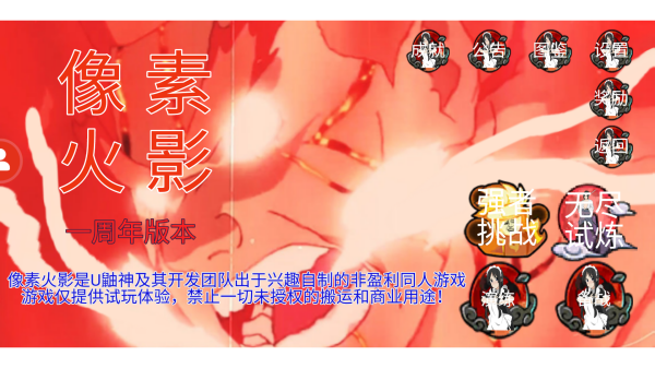 2、多元角色体系:收录数十位火影经典角色,每个角色拥有专属技能组与像素化造型,如鸣人九尾模式、佐助须佐能乎等,支持自由解锁与切换,不同角色玩法迥异。