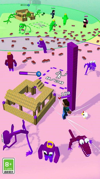 3、竞技建造比拼:在致命的竞技场战斗里,玩家要收集最多砖块并以最快速度建造塔楼,争取胜利。