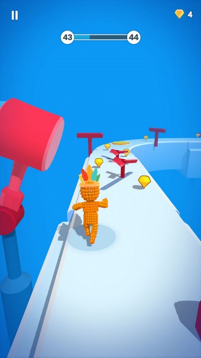 2、躲避障碍危险:面对赛道上的各种障碍物和危险,玩家要找准时机躲避,否则像素人会被直接粉碎。