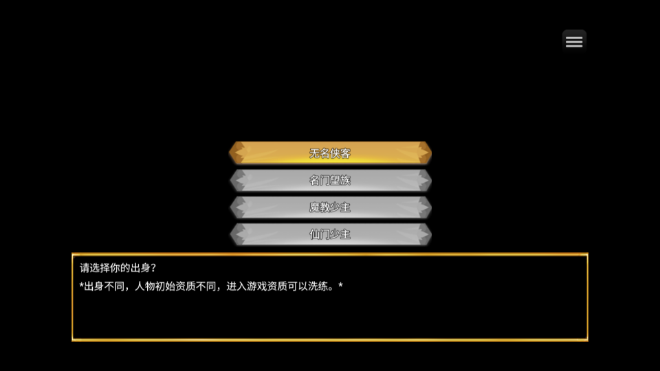 3、选择出身。
