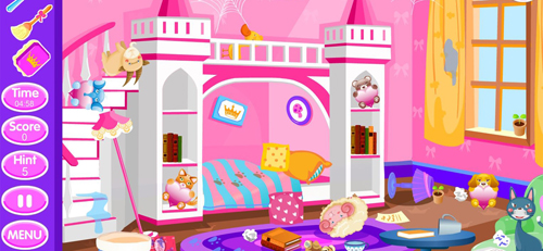 公主房间打扫是一款极具卡通风格的女孩专属游戏,以粉色主题风格打造出满溢少女心的皇室房间场景,模拟打扫皇室房间的任务充满挑战,当公主将房间弄得混乱不堪,玩家就要化身清洁小能手,整理家具、归置玩具、清理污渍、清扫地板,为公主归来做好准备,在趣味清洁中感受温馨梦幻的游戏氛围。