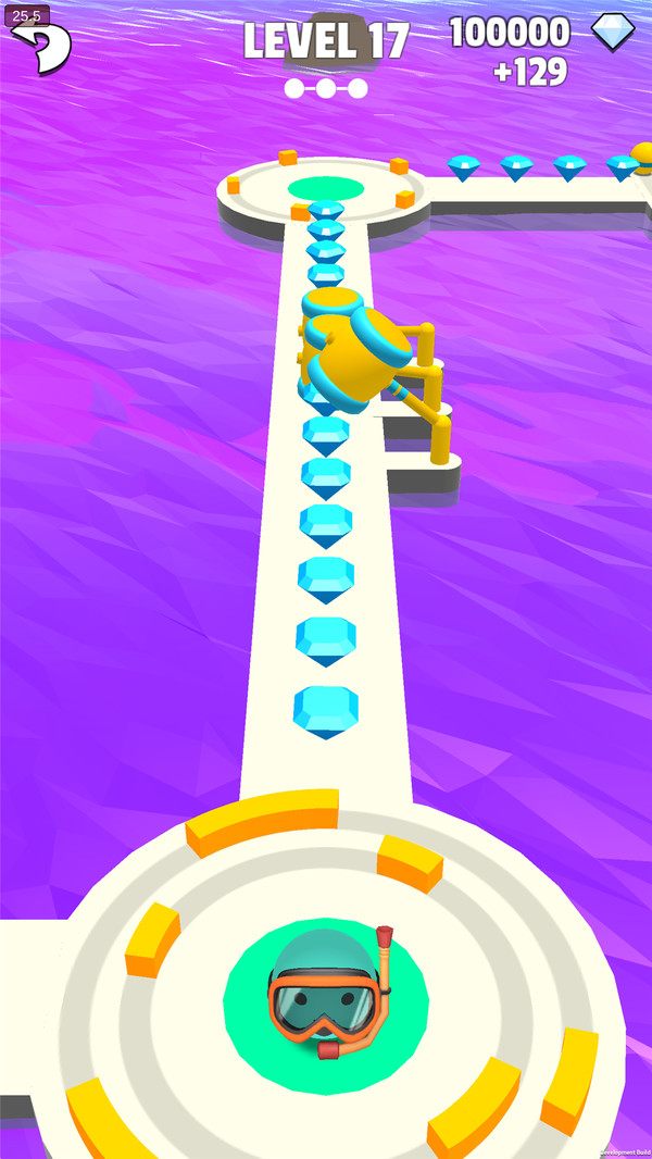 2、收集宝石解锁玩法:在冲刺过程中,你可击落道路上的宝石并进行收集。这些宝石不仅是游玩中的奖励,还能用于解锁不同的游戏玩法和场景,增添作品的探索性与成就感。