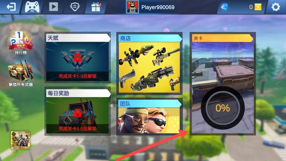 1、点击关卡。