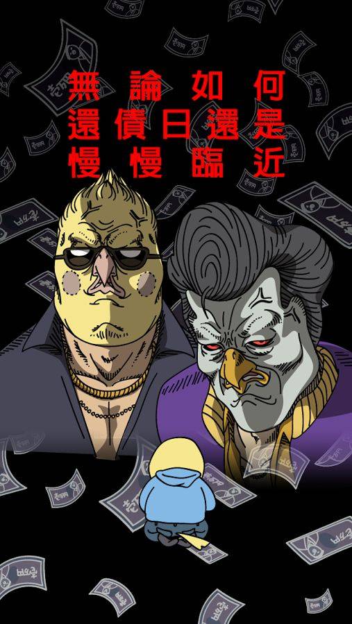 3、紧迫催债节奏刺激:每七天讨债鸟人准时上门,设置明确还款期限与压力。需合理规划赌博、打工与消费,在时间压力下做出决策,营造紧张刺激的氛围。